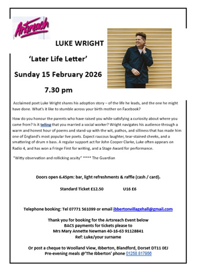 ibbertonvillagehall@gmail.com Bookings: 01258 817269